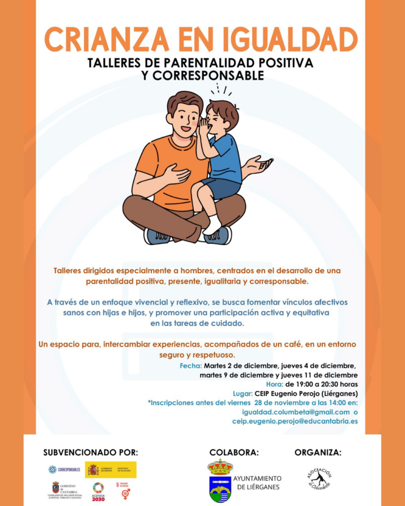 El Ayuntamiento de Liérganes informa de la puesta en marcha de los talleres “Crianza en Igualdad: Parentalidad Positiva y Corresponsable”, una iniciativa dirigida especialmente a hombres interesados en desarrollar una paternidad presente, afectiva e igualitaria. Estos talleres, de carácter vivencial y reflexivo, tienen como objetivo fomentar vínculos sanos con hijos e hijas y promover una…