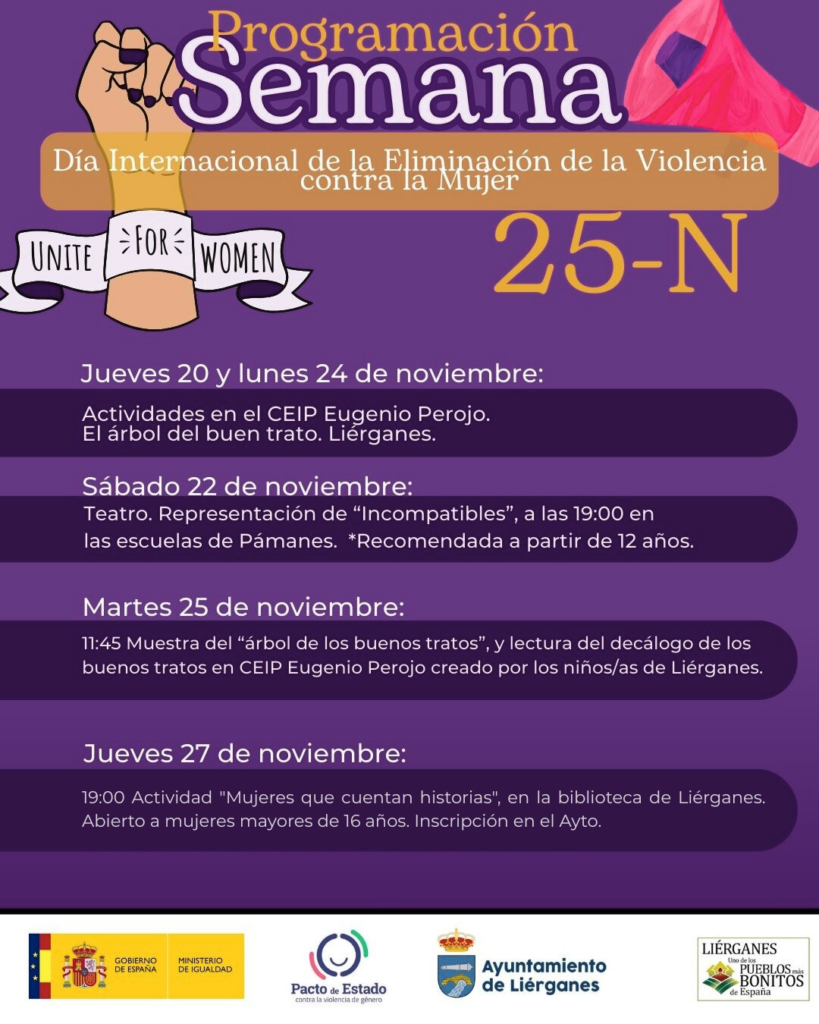 Con motivo del Día Internacional de la Eliminación de la Violencia contra la Mujer, el Ayuntamiento de Liérganes continúa desarrollando diversas actividades de sensibilización dirigidas a toda la ciudadanía. A lo largo de esta semana se llevarán a cabo las siguientes propuestas: Martes, 25 de noviembre. A las 11:45 h tendrá lugar la muestra del…