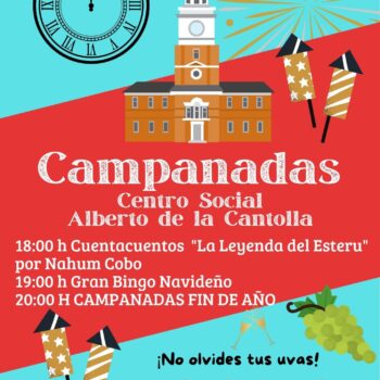 El Ayuntamiento de Liérganes os invita a disfrutar de una tarde muy especial el próximo 30 de diciembre en el Centro Social Alberto de la Cantolla, donde celebraremos nuestras Campanadas anticipadas. La jornada incluirá: 18:00 h – Cuentacuentos “La Leyenda del Esteru”, con Nahum Cobo. 19:00 h – Gran Bingo Navideño. 20:00 h – Campanadas…