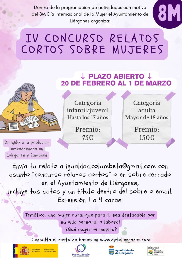 Dentro de la programación organizada con motivo del 8 de marzo, Día Internacional de la Mujer, el Ayuntamiento de Liérganes convoca el IV Concurso de Relatos Cortos sobre Mujeres, dirigido a la población empadronada en Liérganes y Pámanes.