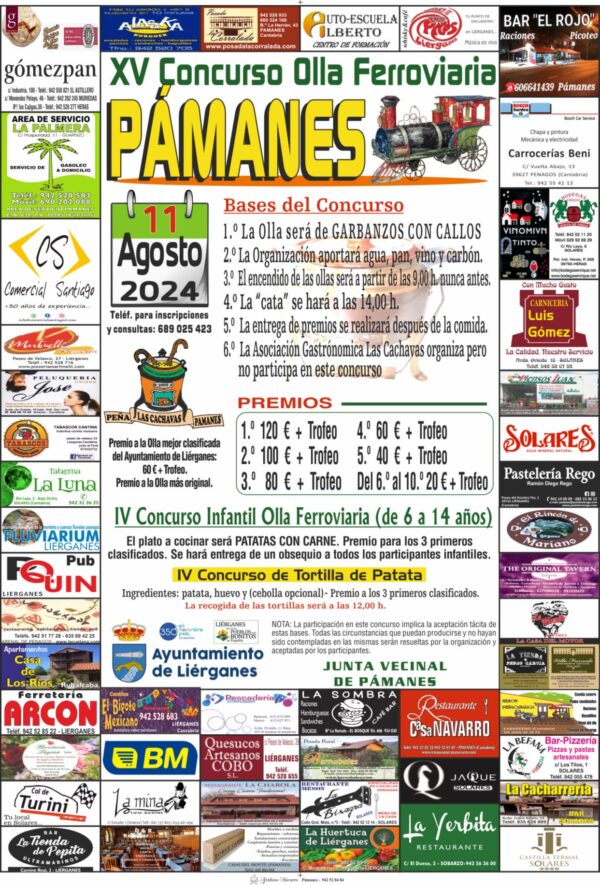 El domingo 11 de agosto en #Pámanes #OllaFerroviaria · XV Concurso Olla Ferroviaria · IV Concurso Infantil Olla Ferroviaria (de 6 a 14 años) · IV Concurso de Tortilla de Patata Asociación Gastronómica Las CachavasInscripción y consultas al 689 025 423