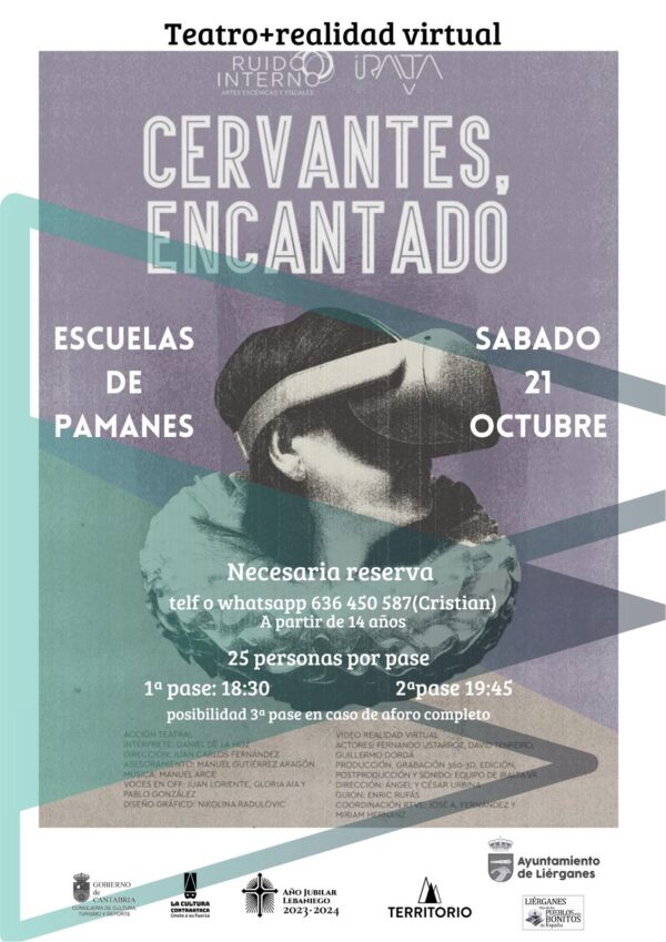 Para esta combinación de teatro y tecnología ”Cervantes, encantado” es preciso reservar en el whatsapp 636450587 (Cristian) a partir de 14 años. Como podéis ver, habrá dos pases con posibilidad de aumentar con aforo completo. ¡Os esperamos! Podemos asegurar que no habréis disfrutado de nada igual hasta ahora.
