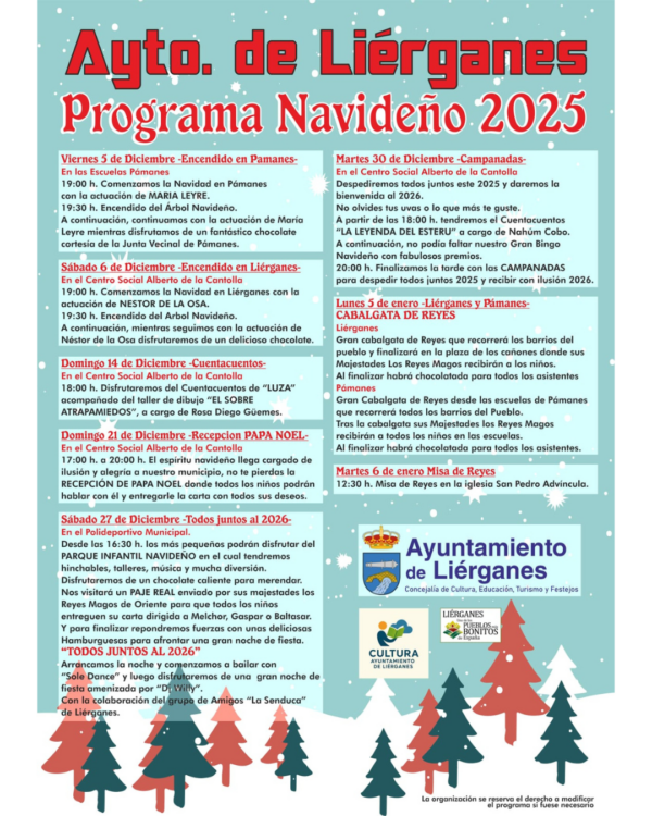 Este fin de semana damos la bienvenida a la Navidad en Pámanes y en Liérganes con el tradicional encendido del árbol y del alumbrado navideño. Tendremos actuaciones musicales, buen ambiente y una chocolatada para disfrutar en compañía. Os animamos a acercaros, compartir este momento tan especial y vivir juntos el inicio de la Navidad en…
