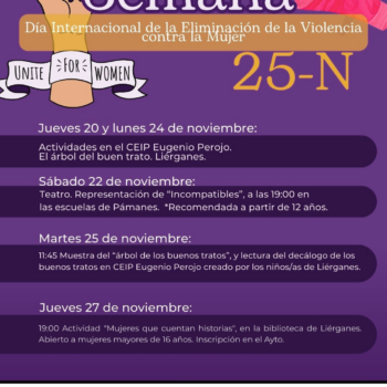 Con motivo del Día Internacional de la Eliminación de la Violencia contra la Mujer, el Ayuntamiento de Liérganes continúa desarrollando diversas actividades de sensibilización dirigidas a toda la ciudadanía. A lo largo de esta semana se llevarán a cabo las siguientes propuestas: Martes, 25 de noviembre. A las 11:45 h tendrá lugar la muestra del…