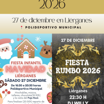 El próximo sábado 27 de diciembre, el Polideportivo Municipal de Liérganes acogerá una completa jornada de actividades navideñas dirigidas a distintos públicos y en diferentes horarios. Durante la tarde, de 16:30 a 20:30 horas, se celebrará la Fiesta Infantil de Navidad, con hinchables, talleres, música, chocolate caliente, la visita del Paje Real y la actuación…