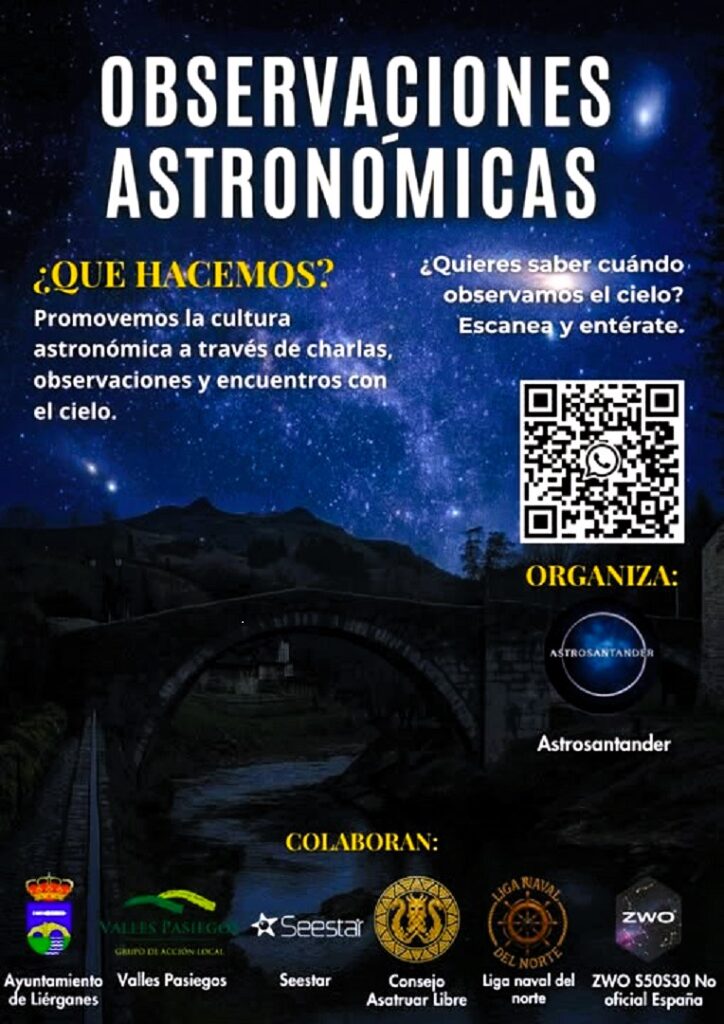 AstroSantander, en colaboración con el Ayuntamiento de Liérganes, te invita a disfrutar de sus encuentros de observación astronómica junto a la Iglesia de San Pantaleón.